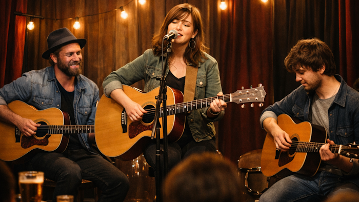 Country, Folk und Americana, akustisch, schöne Gesänge, dazu eigene Songs, die bereits